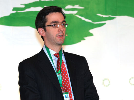 2011年4月21日-22日,由中國企業家俱樂部、道農研究院《綠公司》雜志主辦的“2011中國綠色公司年會”在青島舉行。圖為中國美國商會主席狄安華發言發言。