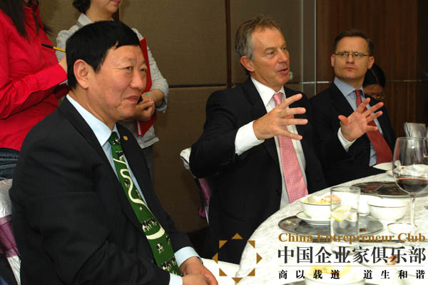 "首先歡迎布萊爾先生的到來!接待外國首相級人士,一對一,我這是第一次。在您當英國領(lǐng)導人的時候,我們即使有這樣的愿望,也沒有這樣的機會。但您現(xiàn)在作為全球氣候組織的創(chuàng)始人來,中國企業(yè)家俱樂部就有機會、有資格在這里歡迎您。"