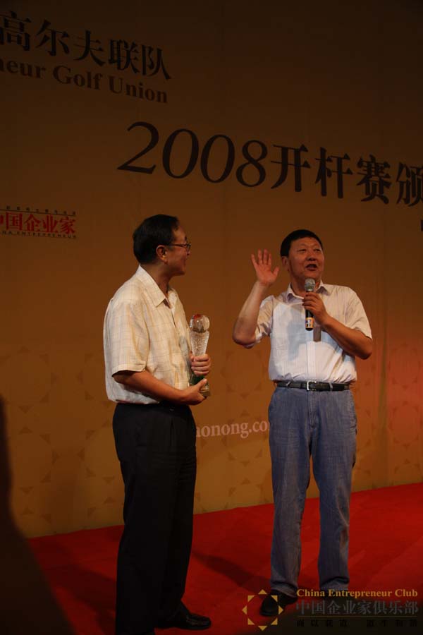 賽后的頒獎午宴上,高朋滿座。賽事主辦方將“領(lǐng)袖獎”頒給了柳傳志先生,以感謝其對俱樂部活動的大力支持。頒獎人牛根生先生感慨道:“在中國可以給柳傳志總裁頒獎的人好像不太多,我今天非常榮幸,比領(lǐng)獎人還要榮幸。我獲得2003年度經(jīng)濟(jì)人物,發(fā)獎人正是柳總。”