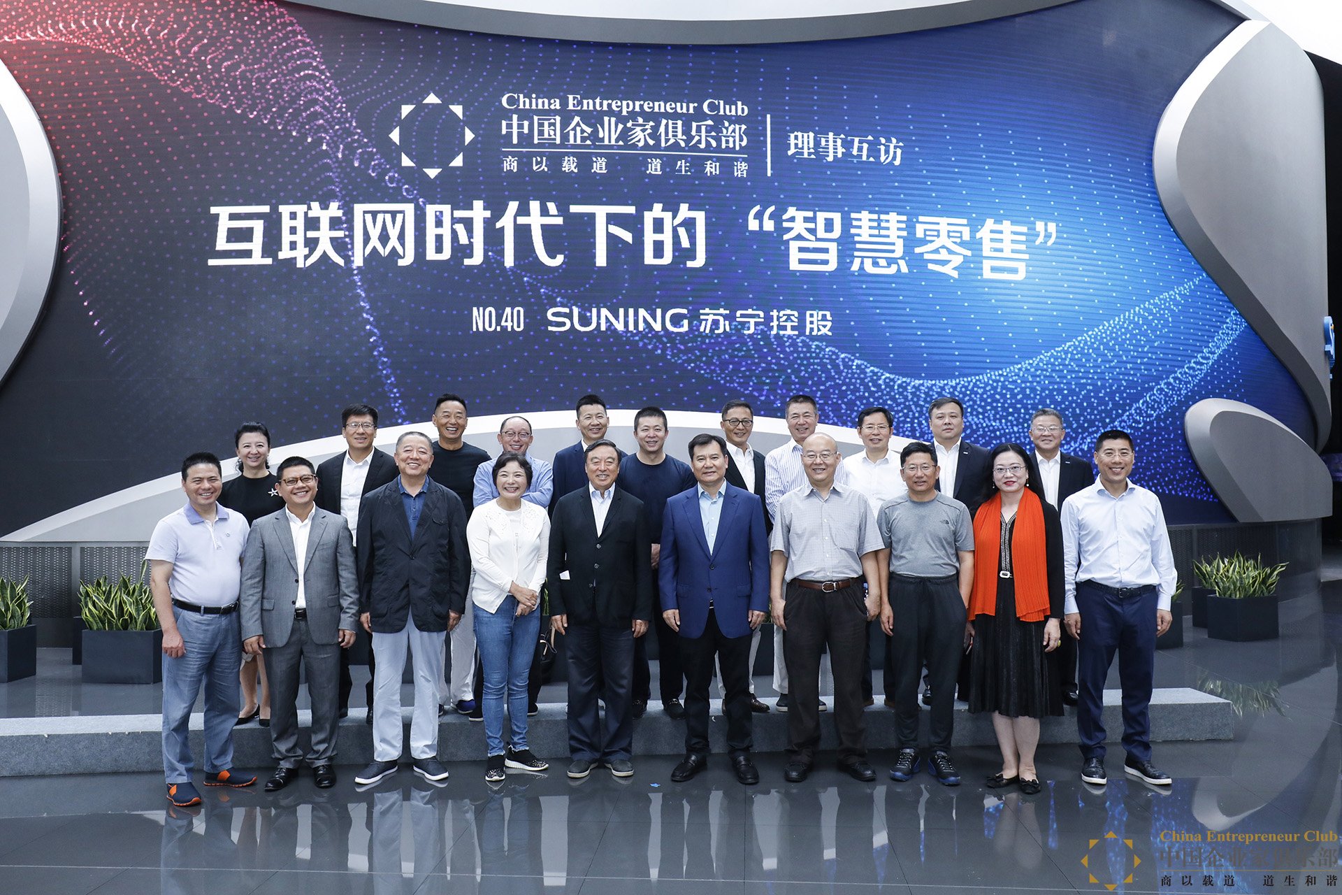 2018年9月6-7日,中國企業家俱樂部理事互訪第40站來到蘇寧總部,理事們實地參觀了蘇寧云倉、蘇寧易購生活廣場和蘇寧足球俱樂部訓練基地,了解蘇寧零售、物流、金融、科技、置業、文創、體育和投資八大產業板塊。