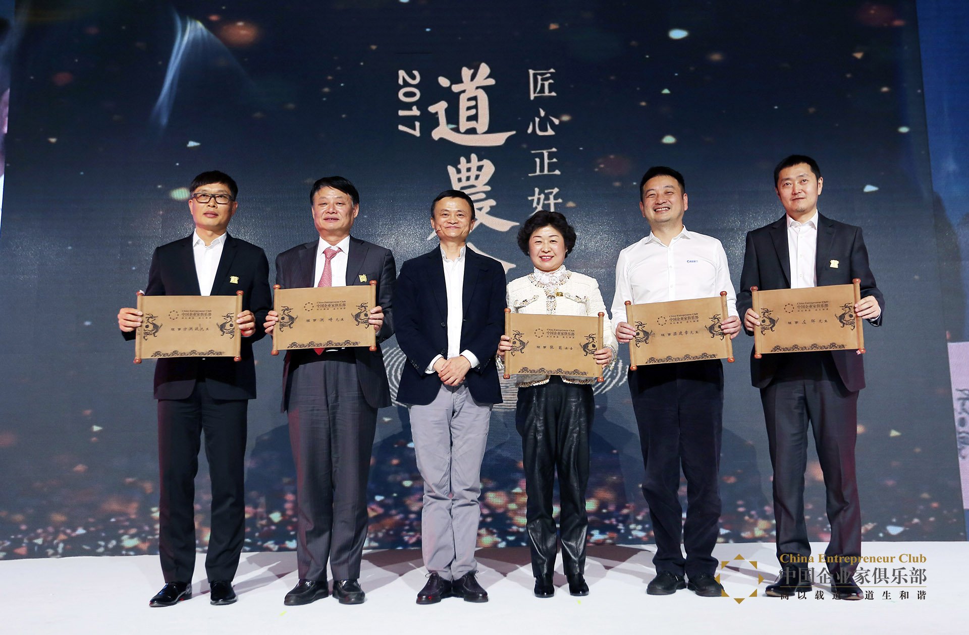 梁建章、左暉、張茵、方洪波、洪崎五位新理事加入中國(guó)企業(yè)家俱樂(lè)部,馬云頒發(fā)證書(shū)