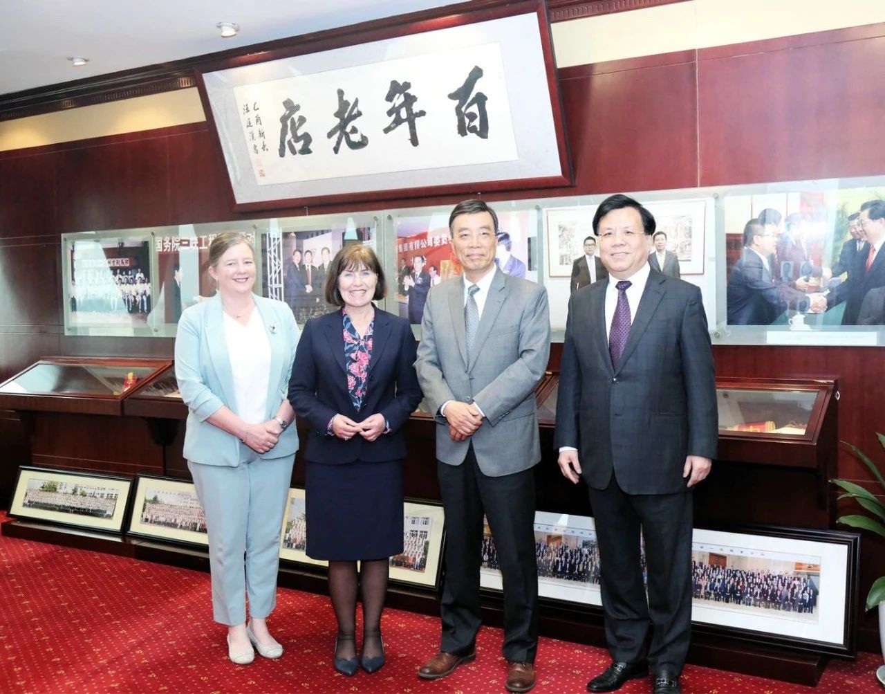 安黛文大使首先參觀了均瑤集團的創業展示廳,對企業三十年發展歷程中取得的成績贊嘆不已。“企業創業中的艱苦奮斗精神、對可持續發展的重視、積極承擔社會責任等都給我們留下了深刻印象,特別是均瑤對百年老店的追求,這也是我們愛爾蘭人所看重的。”安黛文說。