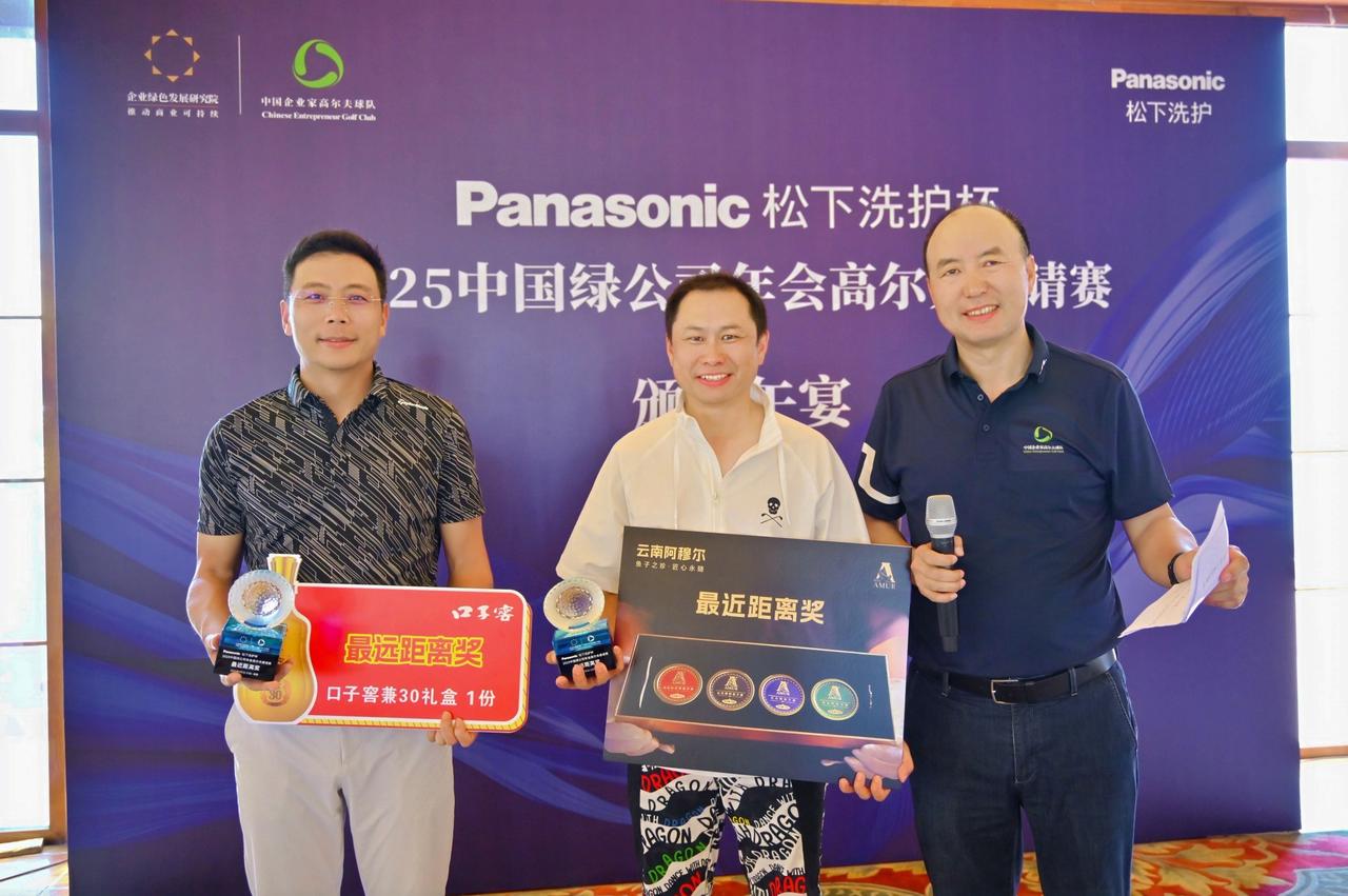 中國企業家高爾夫球隊副隊長游愛國介紹本次賽事獎項設置,兩日皆為個人比桿賽,以第一天成績產生個人凈桿前三;兩天個人總桿成績加總產生本站總冠軍、亞軍、季軍;另設置最遠距離&最近距離獎。頒獎時如獲獎隊員不在場,獎項保留,獎品順延到下一站活動做抽獎使用;總桿、凈桿、單項獎不同時獲獎,如同時獲獎,取名次高的獎項。請大家嚴格遵守中國企業家高爾夫球隊行為規范,保持紳士風度。最后,特別感謝Panasonic松下洗護贊助支持的智能科技生活家電產品。